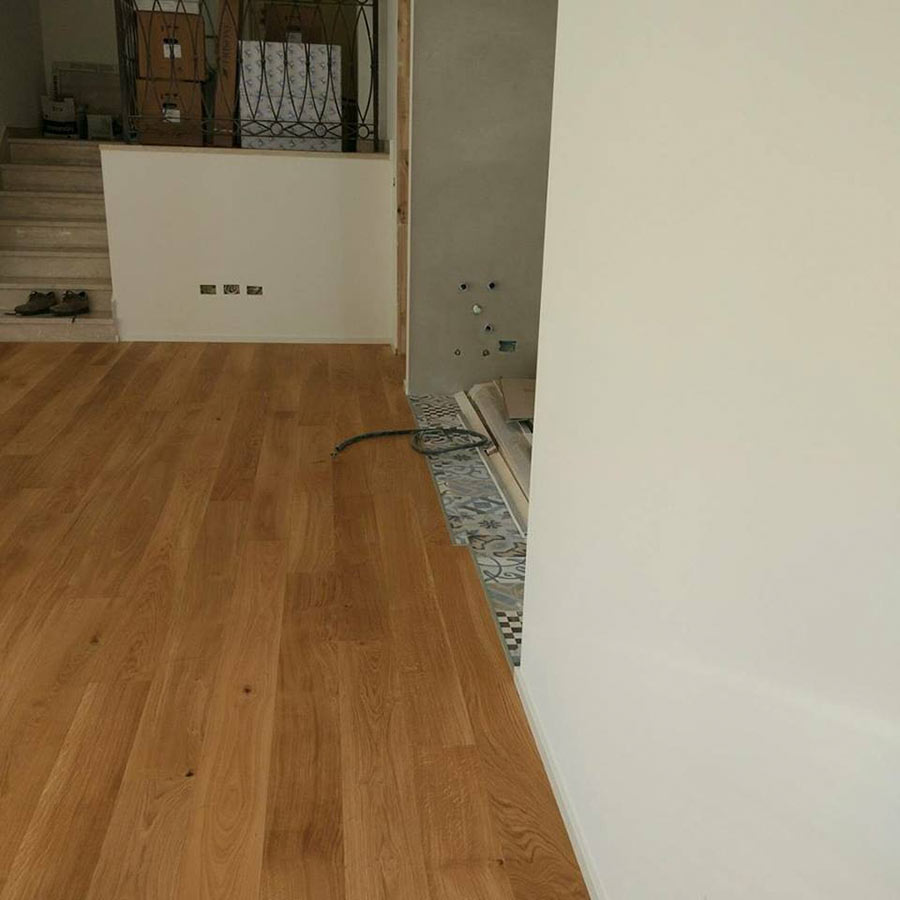 In un appartamento a Milano abbiamo posato sui pavimenti cementine in gres e parquet studiopark della Bauwerk in rovere oliato.