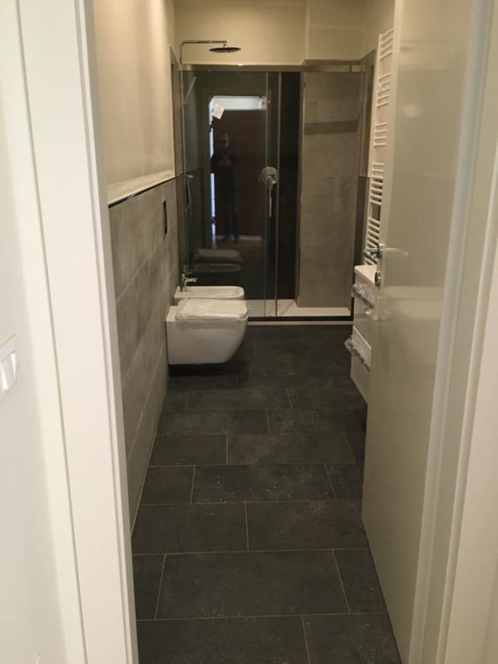 Per il bagno abbiamo pensato ad un design all’avanguardia, realizzando il pavimento con il prestigioso Gres Fioranese Cocci Si tratta di una piastrella molto compatta e dura, e soprattutto non porosa, quindi ha un tasso di assorbimento dell’acqua molto basso. Molto resistente agli agenti esterni, ha un’alta impermeabilità ad acidi, sporco e gelo.
