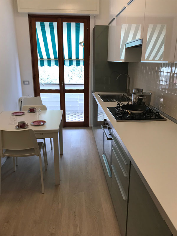 Nella cucina sono state tolte le vecchie piastrelle e sostituite con nuove a rivestire la zona retro piano lavoro, piano cottura e lavandino